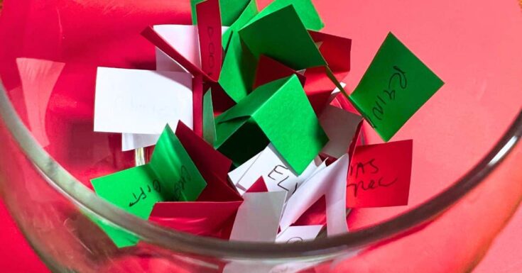 The Christmas Fish Bowl Game (aka: salad bowl game) is a really easy and fun game for Christmas party games, family game night ideas, teen holiday sleepover party games, or Christmas youth group activities. It’s an easy DIY game to play with supplies you have at home!