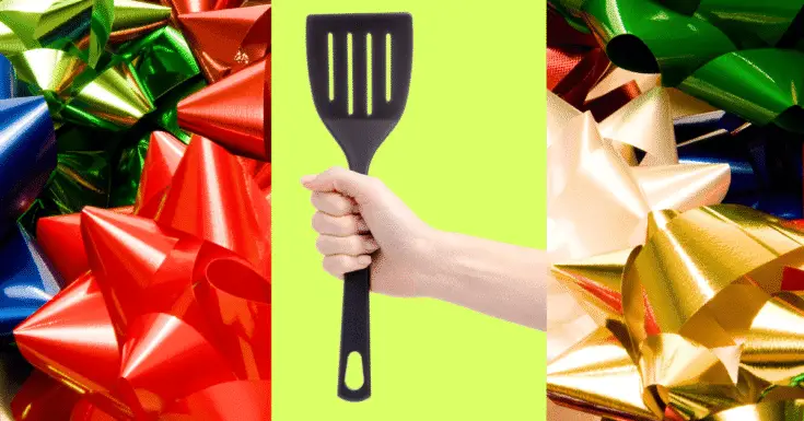 The Christmas bow game with spatula, or the Christmas ribbon game, is a fun group holiday game with cheap present bows. This is a great Christmas activity for all ages! Fun party games for the holiday season!