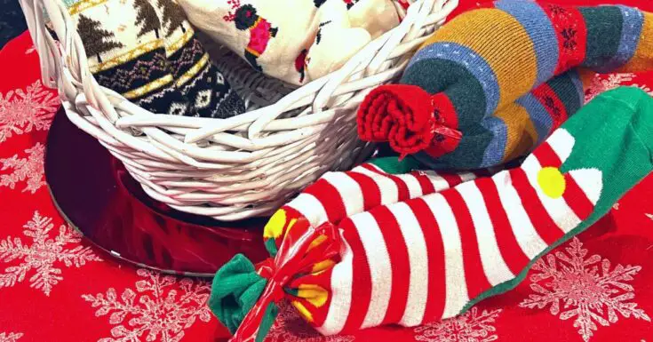 These sock exchange Christmas sock gift ideas are great for playing the Santa sock game (aka: Christmas Sock game, sock share, holiday sock swap, or Christmas sock exchange), a fun holiday party group game, kids activities for Christmas parties, or great alternative to the White Elephant gift exchange!