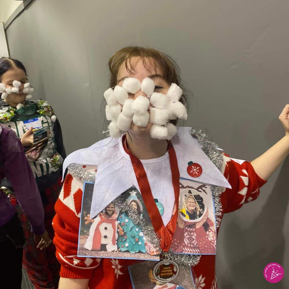 The perfect way to get in the holiday spirit is to host a Santa Beard Growing Contest this hilarious Santa party game is a hit with teens and adults.