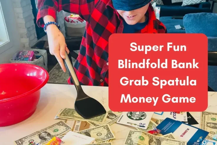 The Blindfold Bank Grab spatula game might be the easiest and funniest money game our family has ever played.