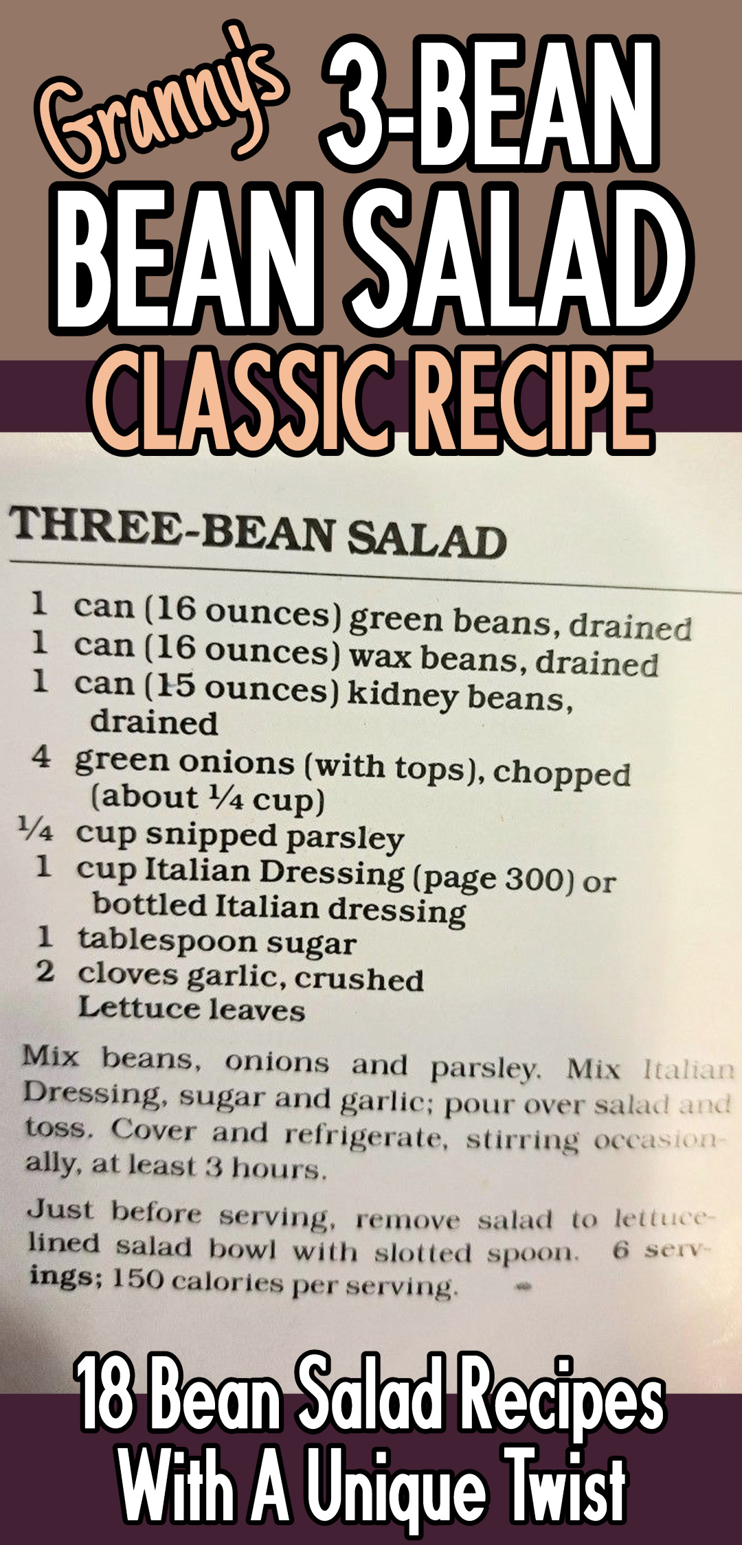 If you really just want the Classic 3-Bean Salad recipe, here is my granny’s recipe she made for years and years!